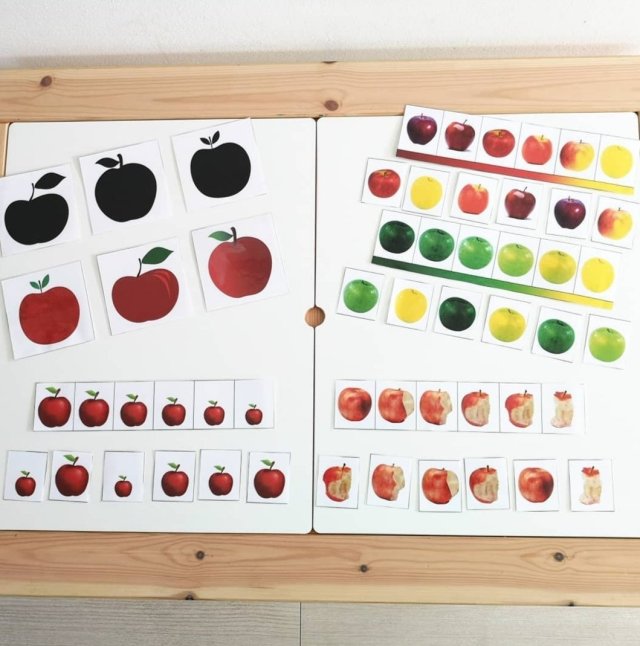 Imagier pour activités de mises en paires, Fichier chasse aux trésors, Fichier fruits et légumes d’automne, Fichier empreintes des animaux de la forêt, Discrimination visuelle (loto de l’automne, tri de dégradés de couleurs), Mathématiques (dénombrement, algorithmes).