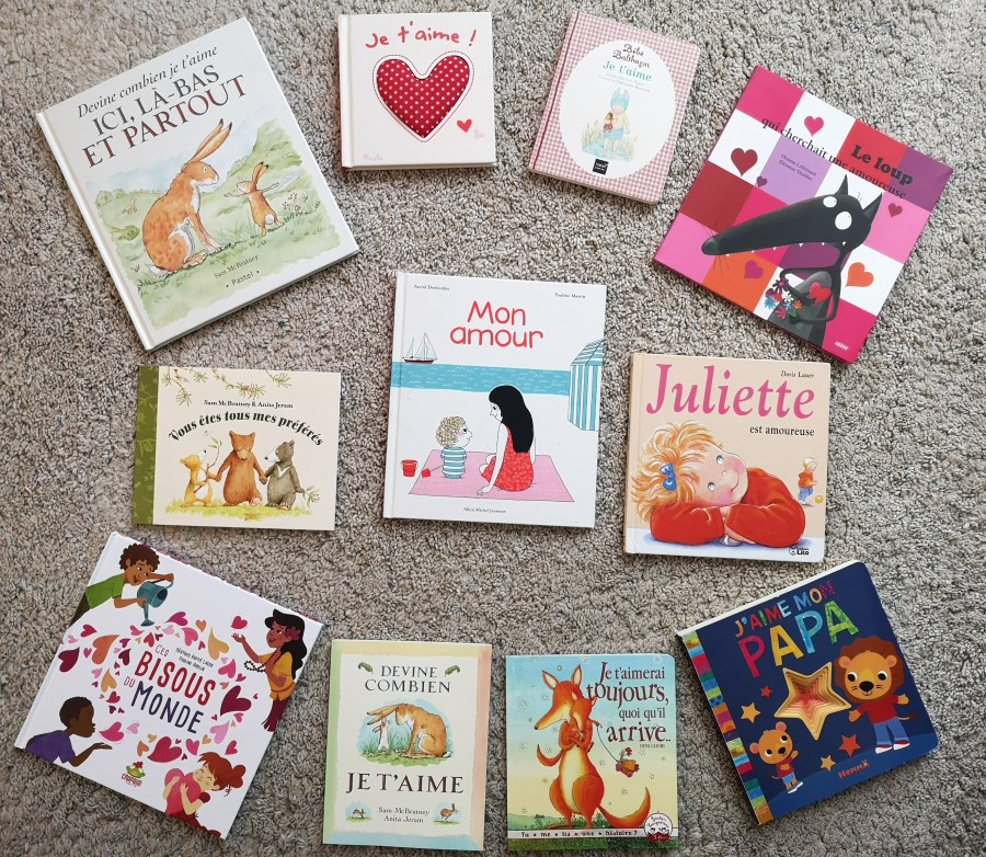 Nos activités et lectures suivent le rythme des saisons et des fêtes. La Saint-Valentin n’y échappera pas. Ce sera l’occasion de parler d’Amour : l’amour au sens amoureux mais surtout de l’amour familial. Histoire de rappeler aux enfants à quel point je les aime même dans certaines situations où ils pourraient s’imaginer que non.