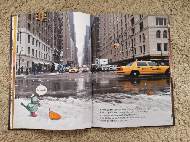 A New-York, la moinelle nous emmène à travers les rues de New York et nous fait découvrir quelques lieux mythiques (avenue de Broadway, pont de Brooklyn, Statue de la liberté…). J’avoue que j’aurai aimé avoir davantage de lieux en photos (Central Park, Rockefeller center…). Mais le livre n’en reste pas moins très beau.
