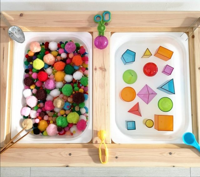 Les premières activités proposées autour des formes et des couleurs peuvent être proposées assez tôt (vers 1 ans). Il s’agit alors pour l’enfant de faire des mises en paires, d’associer des formes et des couleurs similaires. Quand l’enfant commence à parler on peut lui nommer les formes et les couleurs en même temps.