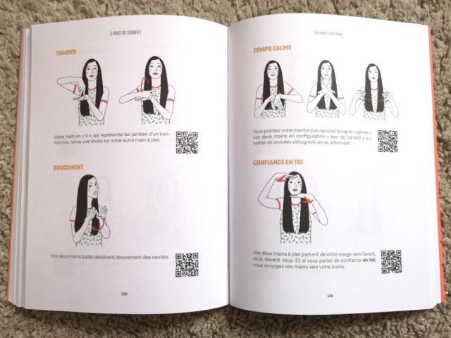 Chaque signe est illustré et légendé. Il y a également un flashcode qui permet d’accéder à une vidéo pour une maitrise parfaite du geste.