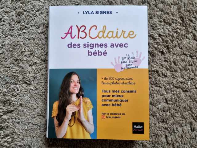 J’ai eu l’occasion de découvrir un dictionnaire des signes, écrit par @lyla_signes, qui m’a été envoyé par la maison d’éditions. Je ne signe plus avec Naïa qui a désormais 3 ans et qui est un vrai moulin à parole (malgré le fait qu’elle est parlé assez tardivement). Mais je trouvais intéressant de vous présenter un nouveau support pour vous aider à signer avec bébé. C’est vraiment une expérience que j’ai aimé et qui nous a aidé à communiquer avec Naïa lorsqu’elle n’avait pas l’usage de la parole ou un usage limité (jusqu’à 2 ans et demi).