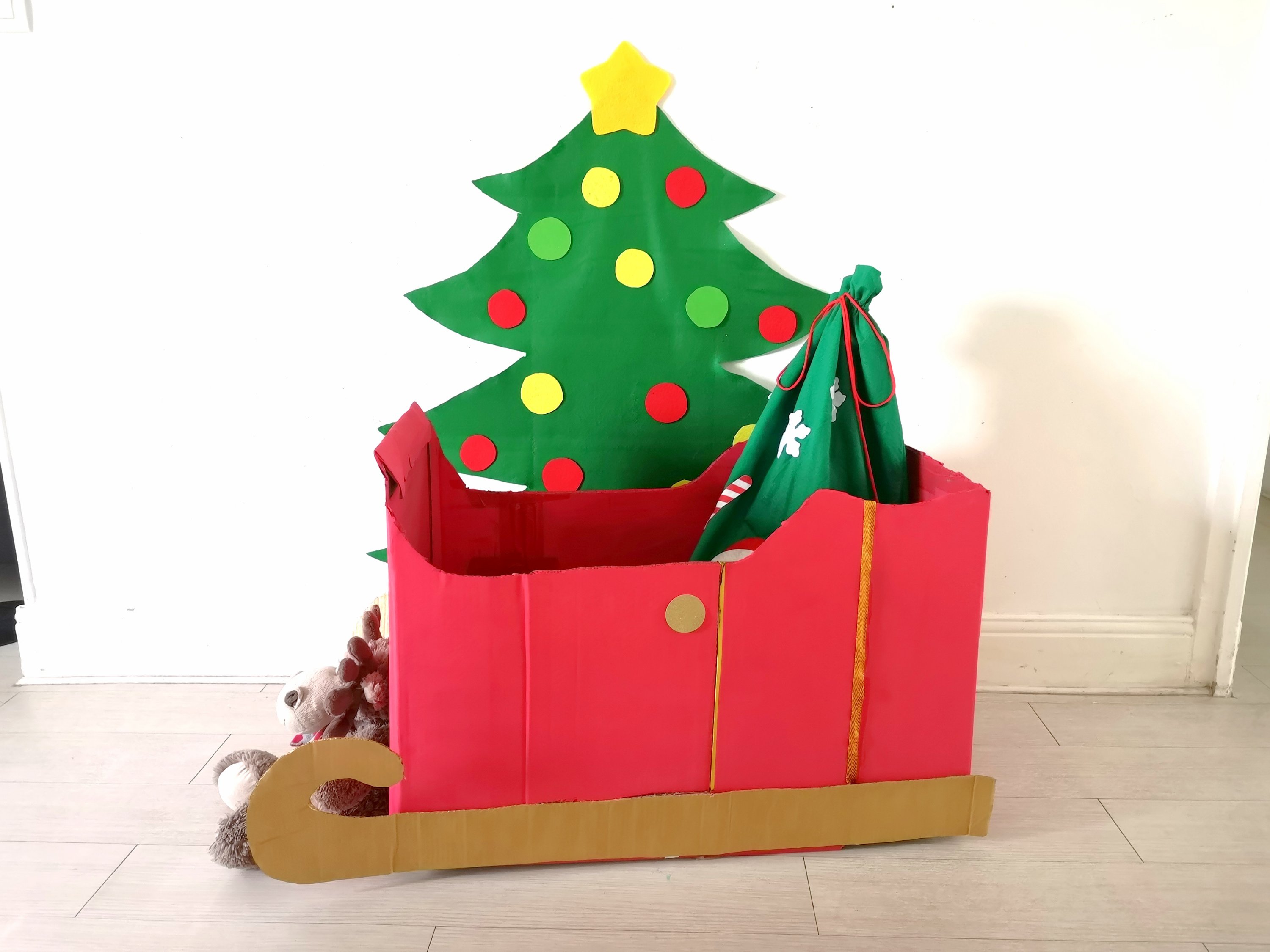 Puis le traineau (fabriqué lors d’une farce de nos lutins) les attendait pour aller distribuer les cadeaux.