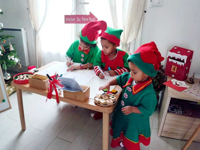 Lorsque j’ai vu ces déguisements de lutins sur Wish, j’ai tout de suite vu les enfants dedans et imaginé une invitation à jouer aux lutins. Pour le 7ème jour du calendrier de l’Avent, les enfants ont donc pu découvrir un « bon pour une invitation à jouer aux lutins », des déguisements de lutin dans la boite aux lettres de l’Avent et un atelier des lutins dans le salon. Ils étaient ravis !!!