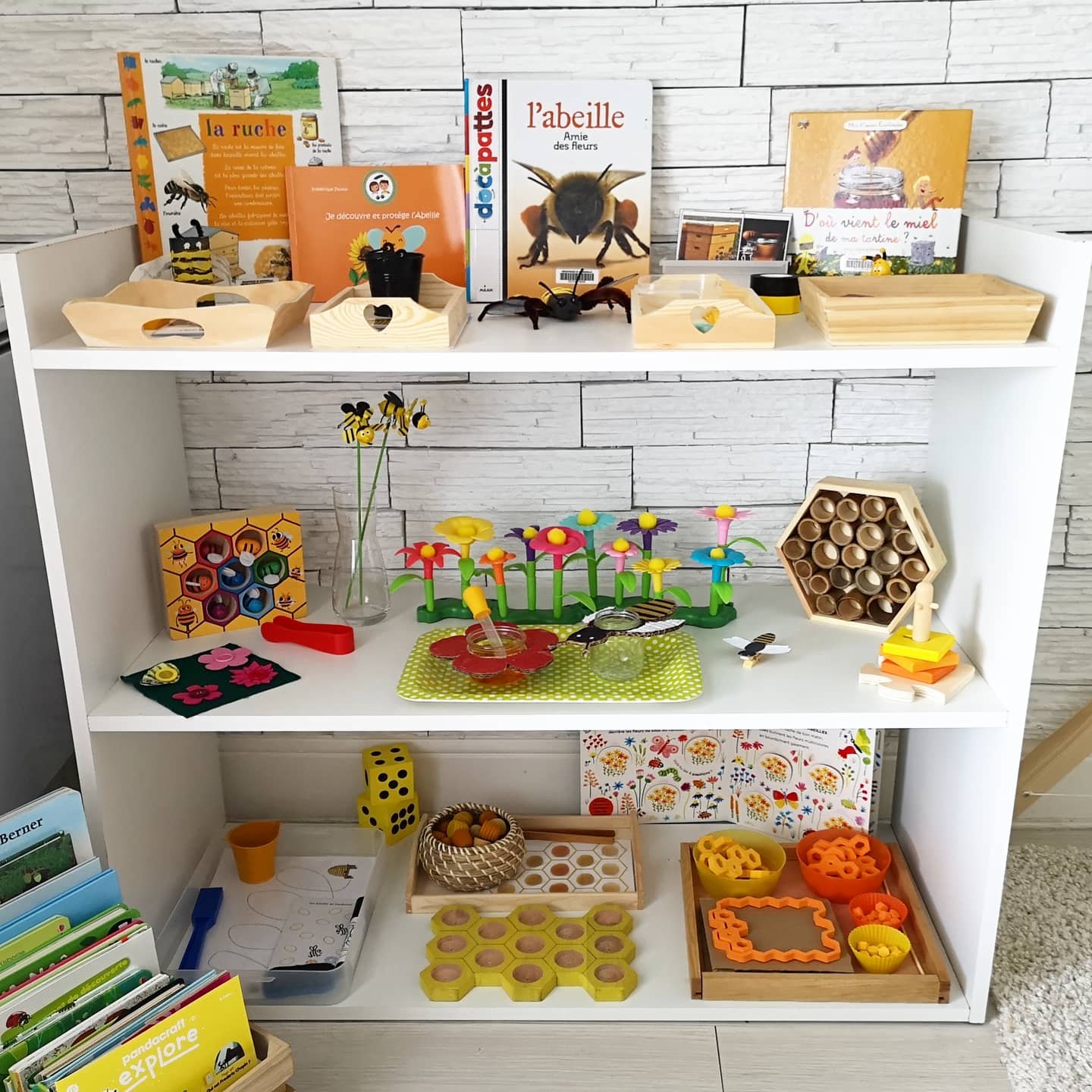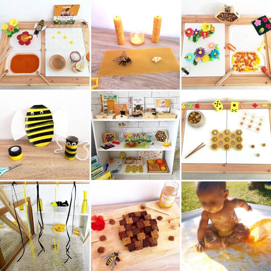 Notre thématique sur les abeilles est désormais terminée. Il s’agissait d’une petite thématique d’une semaine qui m’aura permis de proposer quelques activités ludiques pour découvrir la vie des abeilles. J’avais prévu trois autres activités (bac sensoriel de riz coloré, peinture de ruche avec du papier bulle et pâte à modeler), qui, je pense, auraient plu aux enfants. Mais j’avoue être un peu fatiguée et moins motivée en ce moment. C’est important de s’écouter et de faire les choses avec plaisir, je préfère donc m’arrêter là pour cette année.