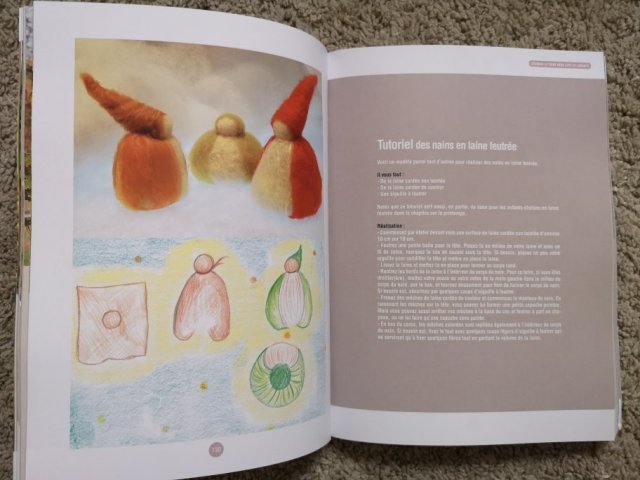 Le livre propose également plusieurs tutoriels de créations artisanales : poupées en laine, famille hérisson au tricot, nains en laine feutrée….