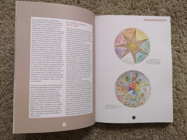 J’ai été agréablement surprise de découvrir à quel point ce livre était complet et précis. Il permet de comprendre l’état d’esprit de la pédagogie, ses différents principes et nous aide aussi à la mettre en place au quotidien chez nous, de façon très détaillée (idées d’activités, de lectures…). Personnellement, c’est une pédagogie qui me paraissait assez complexe à pénétrer, notamment en raison de sa dimension spirituelle avec ses nombreuses célébrations. Ce livre permet de démystifier cette pédagogie en nous expliquant ses fondements, en nous présentant l’ensemble de ses festivals et leurs significations et en nous guidant concrètement dans sa mise en place. L’auteure a pensé ce livre comme une formation, pour mettre rapidement et facilement en place les fondements de cette pédagogie. Elle nous livre ici son interprétation de la pédagogie Steiner et son expérience, telle qu’elle l’a mise en œuvre dans sa famille avec des adaptations nécessaires à notre époque. Elle nous invite aussi à avoir cette souplesse dans l’interprétation des fêtes, dans l’adaptation à nos rythmes personnels et familiaux, dans le choix d’activités qui font sens dans notre famille.