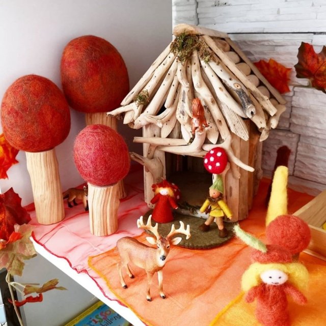 - Suivre le rythme des saisons. Depuis que j’ai commencé le co-schooling, j’ai choisi les saisons comme fil conducteur de mes activités. Elles permettent aux enfants de construire leur rapport au temps et sont sources de nombreux apprentissages : cycle de vie des végétaux, des animaux, changements de climat, fruits et légumes de saisons, modification des comportements des animaux, fêtes populaires… Pour cette troisième année de co-schooling, j’ai décidé de m’inspirer de la pédagogie Steiner en apportant également une dimension féérique à la découverte des saisons, à travers mes tables de saisons, des minis-mondes avec des personnages féériques mais aussi des histoires féériques sur les saisons (voir ma sélection de livres sur les saisons avec notamment Fanette et Filippin ou encore Minisculette).