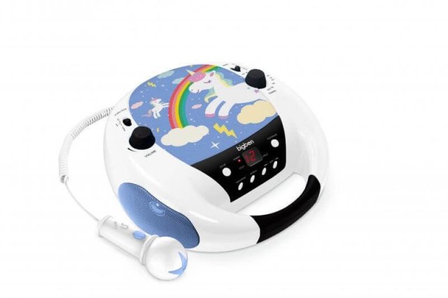 Ces derniers temps, Mila aime beaucoup utiliser le poste CD pour écouter la radio ou les CD. Mais il est difficile à utiliser. Je lui ai donc pris ce lecteur CD que j’ai trouvé sur Vinted. J’aime bien le fait qu’il soit portable au moins elle peut le prendre dans son lit, l’emmener dans le jardin… Et le micro va surement beaucoup lui plaire !