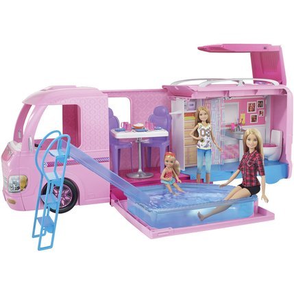 Mila voulait un camping car pour ses poupées. Elle en avait vu un à Babou avec une barque qui lui plaisait mais le temps qu’on y retourne il n’y était plus. Elle a donc choisi celui-ci de la marque Barbie, que j’ai acheté d’occasion.