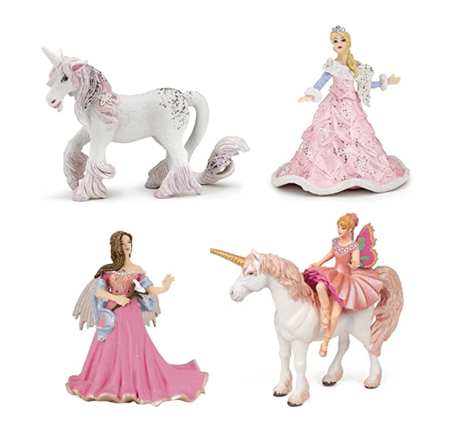 Mila a déjà plusieurs princesses et autres figurines de cette marque. Elles sont superbes. Je les utilise pour les lectures vivantes et les enfants adorent jouer avec. Nous avons déjà Blanche-Neige et les sept nains, Les trois petits cochons, Raiponce, Elsa, La belle. Nous allons compléter avec La bête, La belle au bois dormant, Ariel, Cendrillon…