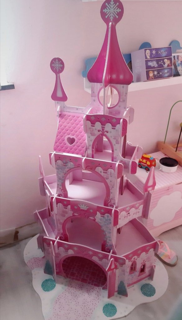 Il servira de château pour les figurines princesse Disney, même si je pense que Mila y mettra aussi les poupées Disney car elle voulait également une maison de poupées pour elles. Mais nous n’avons pas le budget pour cette année.