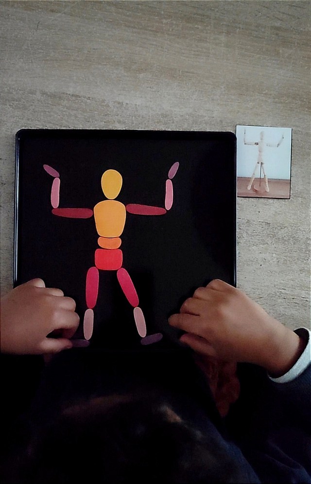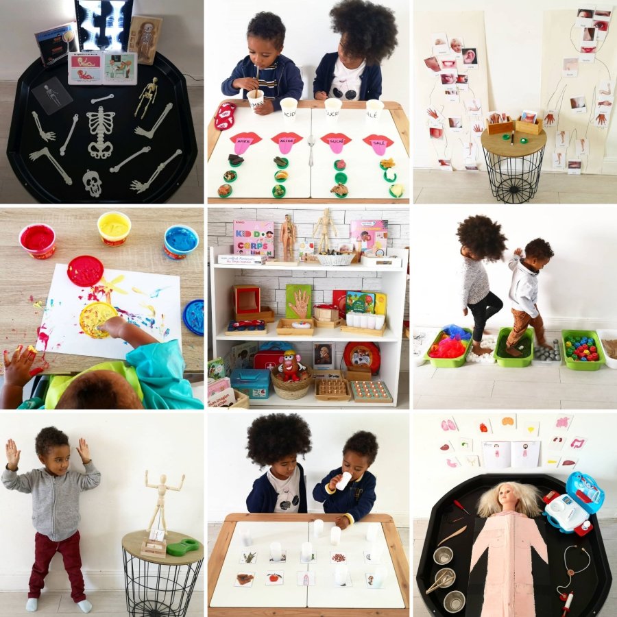 Notre thématique du corps humain est désormais terminée. Elle nous aura occupé deux semaines. La première semaine, nous nous sommes intéressée à l’anatomie humaine et la deuxième semaines aux cinq sens. J’avais prévu de terminer par une activité autour du cycle de vie de l’homme mais nous ne l’avons finalement pas fait. Nous n’avons pas traité les émotions car nous l’avions déjà fait à la rentrée.