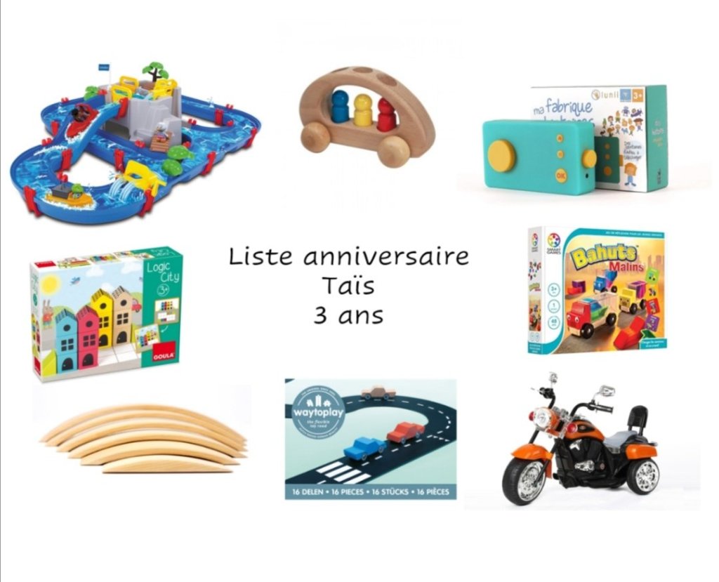 4 ans pour mon petit-grand garçon !!! Je l’aurai écouté sa liste aurait fait des km. Un mois avant son anniversaire, il a commencé à me réclamer tout ce qu’il voyait ! Donc il en a mis de côté pour les listes des prochaines années, il y a même des choses pour une fois qu’il aura le permis, si c’est pas de l’anticipation ! 😂