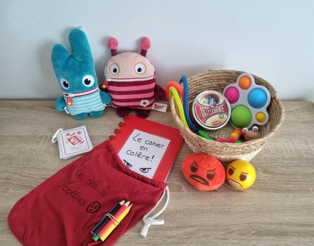 Il s’agit d’objets et livres pour se consoler, se détendre, se calmer après une colère, un chagrin, une angoisse, une forte émotion ou quand ils sont surexcités.