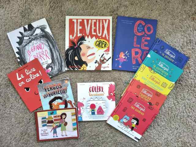 Des livres et des objets pour accompagner la colère et notamment des fidgets (définition Hoptoys : petits objets qui aident à focaliser l’attention en proposant un exutoire moteur aux tensions et désir de mouvement).