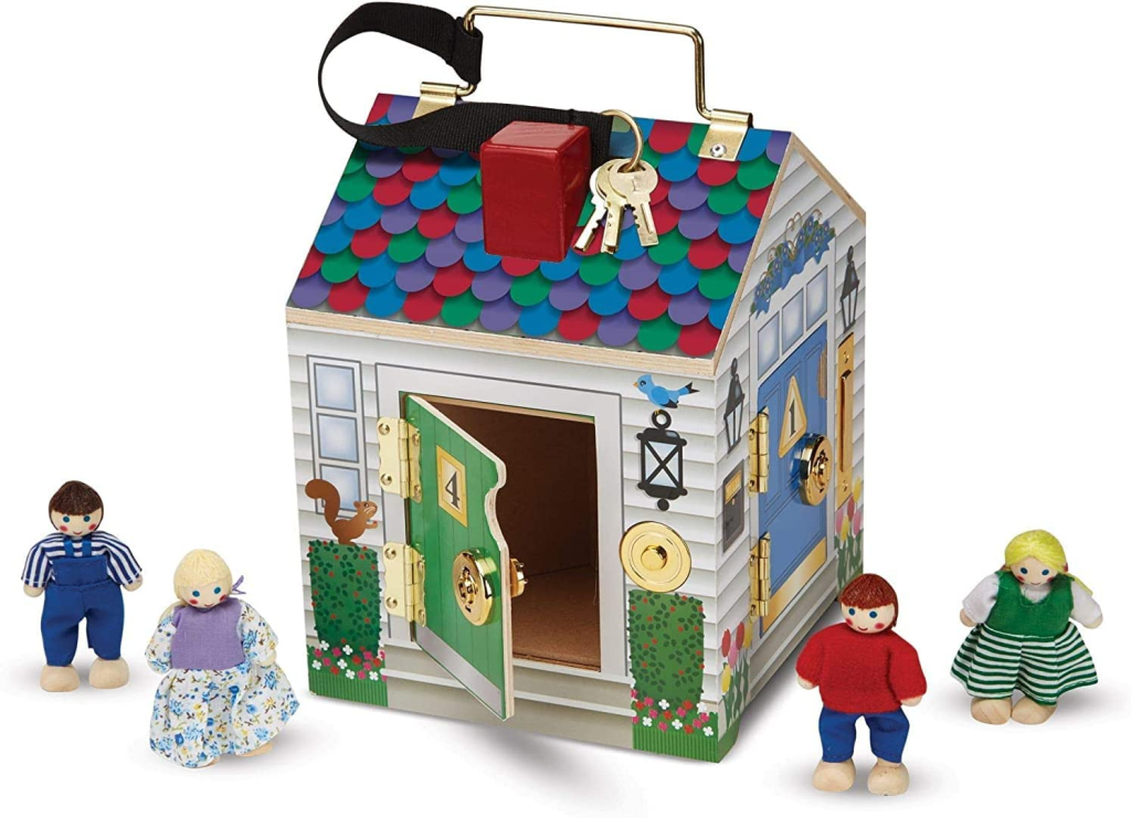 Voici une maison qui devrait beaucoup plaire à Naïa. Elle se compose de 4 parties, chacune ayant sa porte avec une sonnette et une serrure. Les 4 clefs numérotées sont attachées à la poignée et ne risquent donc pas d’être perdues.