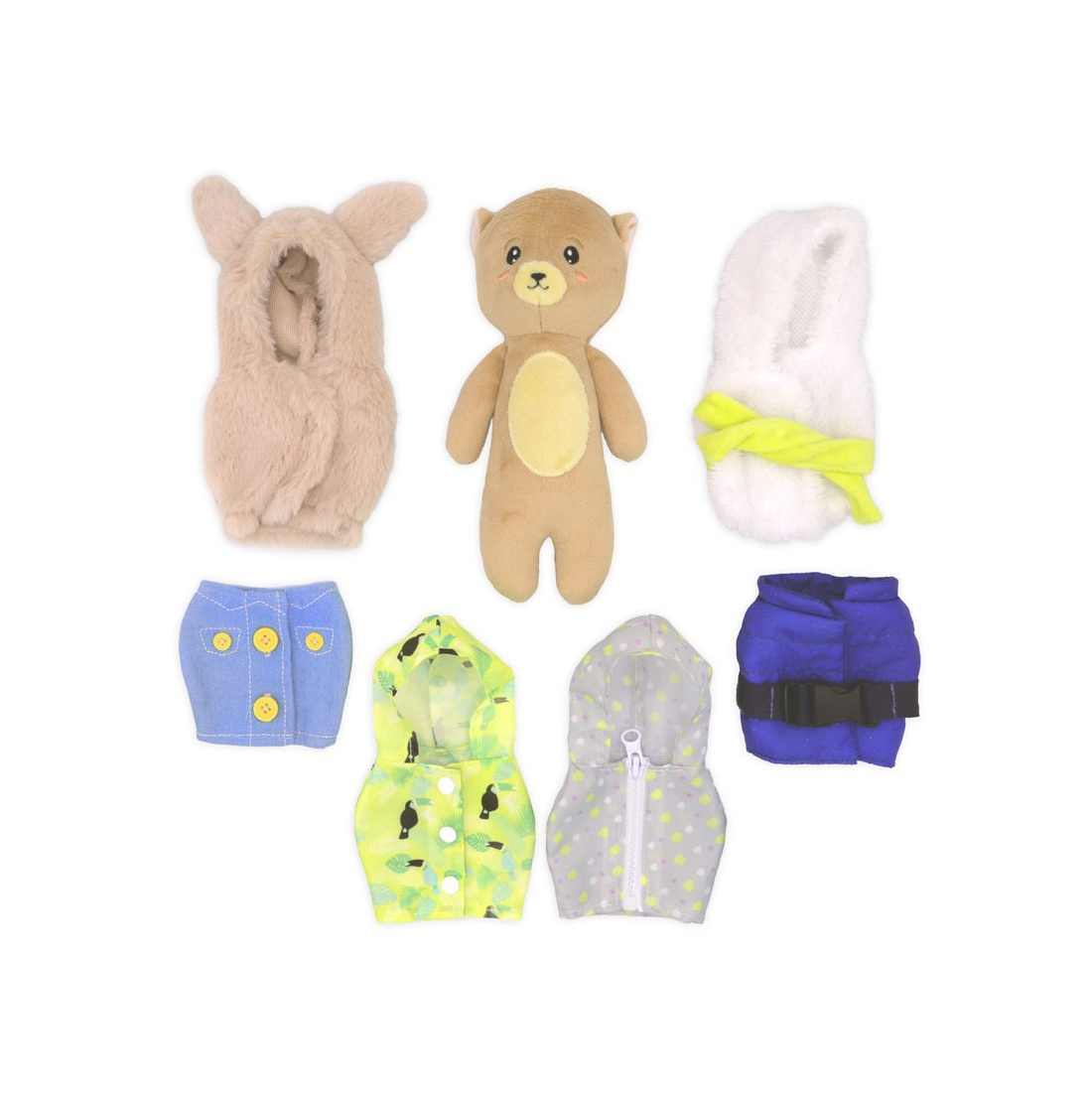 Je pense donc que ce petit doudou à habiller devrait beaucoup lui plaire ! Il dispose de 6 tenues avec différents systèmes d’attache : scratch, boutons, ceinture, nœud, boutons pressions et zip.