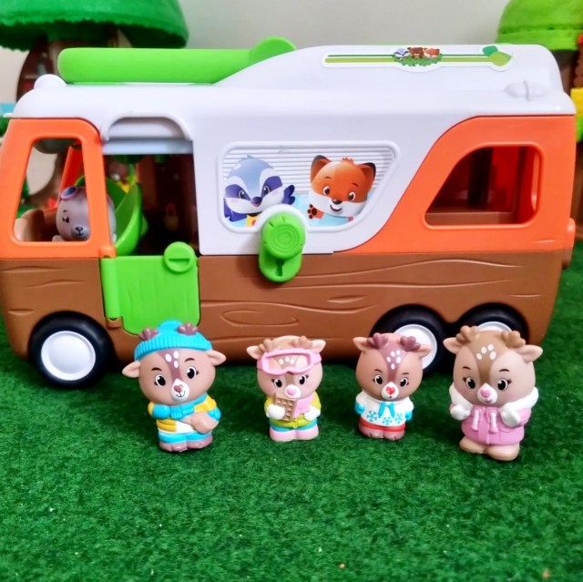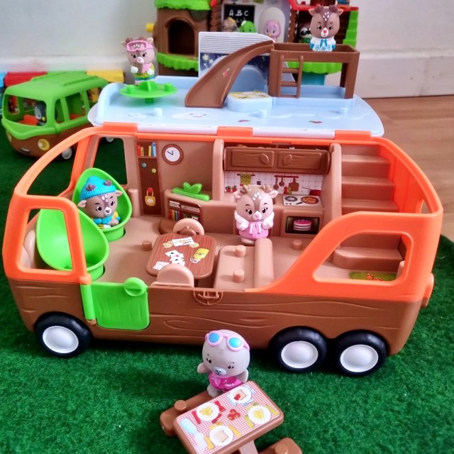 Ce camping car est vraiment adorable et bien pensé avec toutes ces actions ludiques : toboggan, tv pop-up, table réversible, tourniquet… Et Naïa pourra transporter ses personnages dedans. Elle apprécie tout particulièrement les véhicules pour jouer avec les figurines. De quoi s’inventer pleins de belles histoires !
