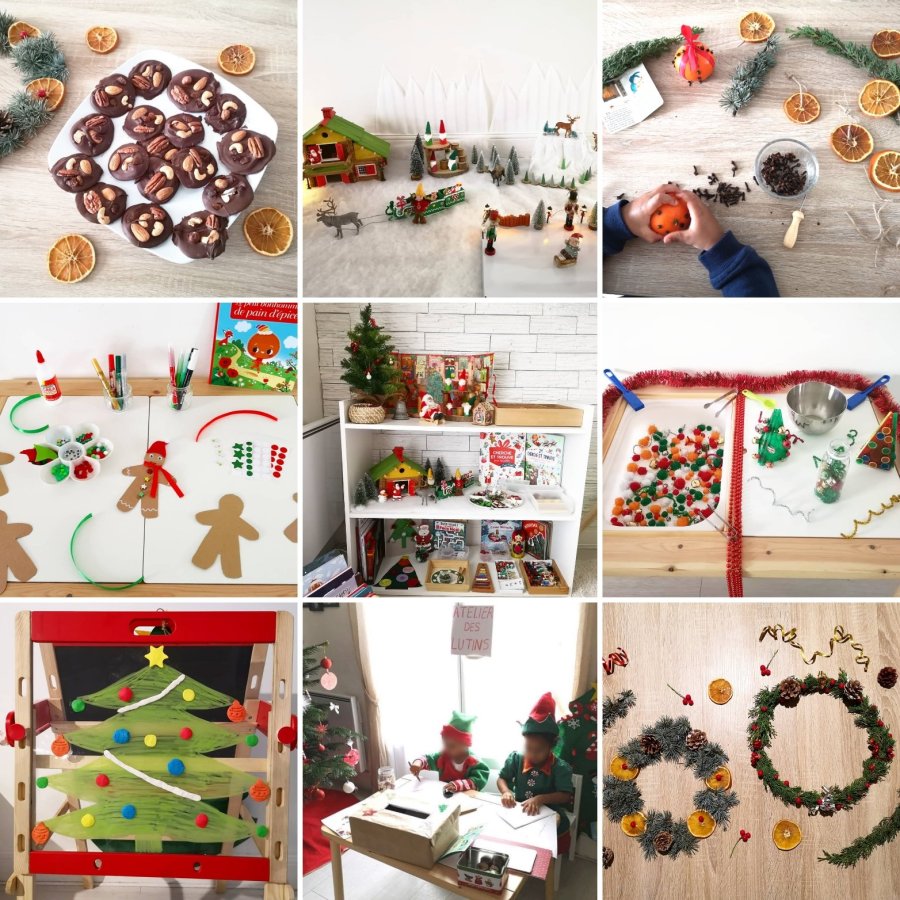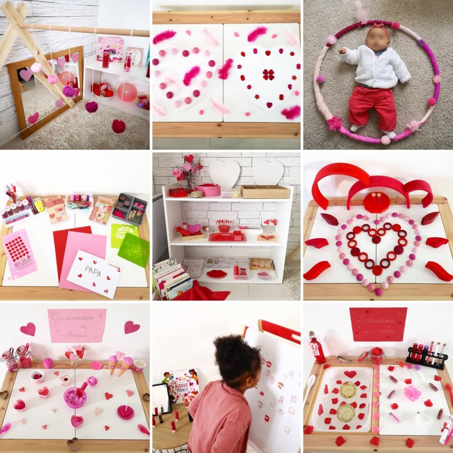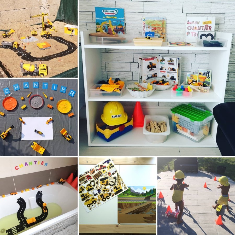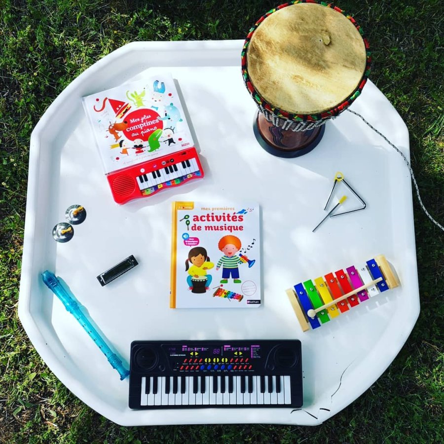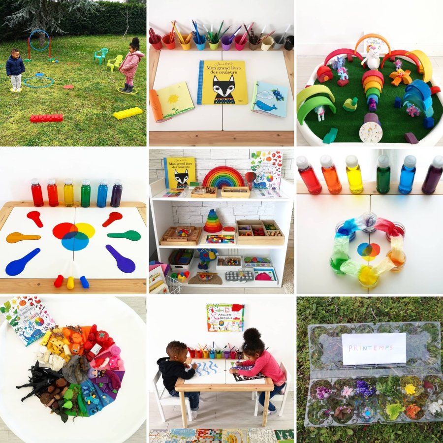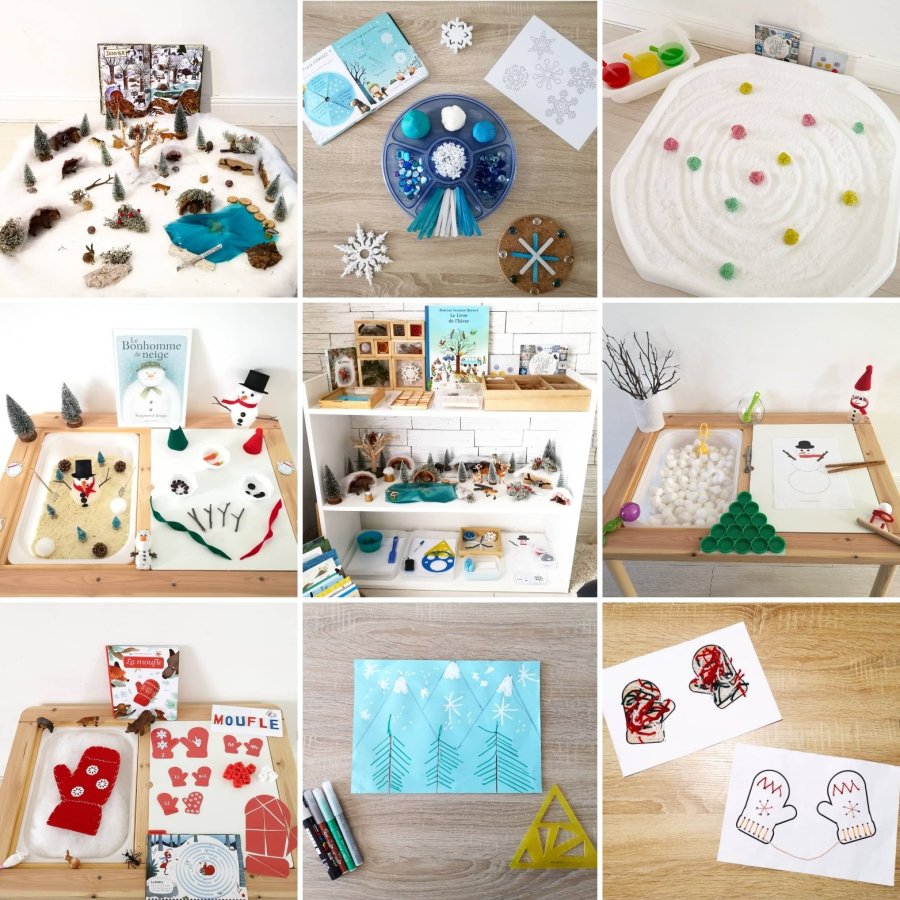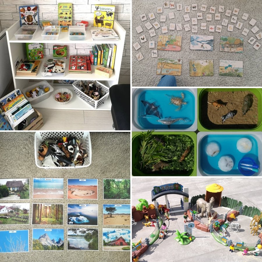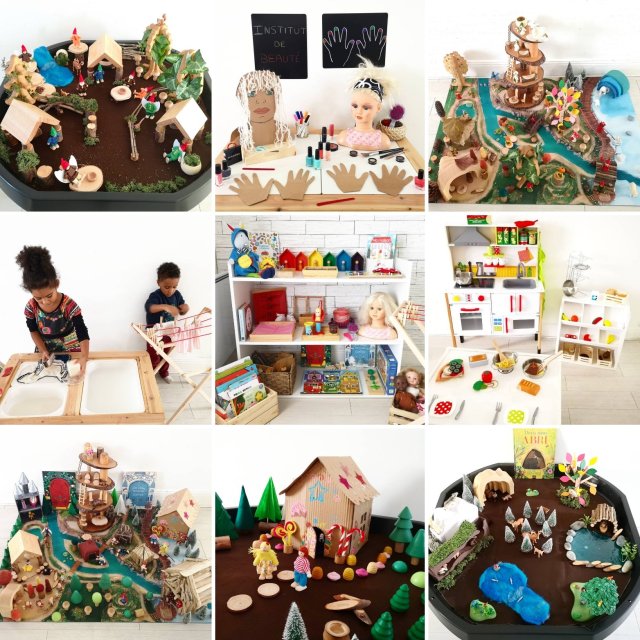 Pour chaque thématique, je propose, à la fois, des plateaux d’activité qui restent à disposition pendant le temps de la thématique et que les enfants peuvent faire de façon autonome, et également des activités ponctuelles que l’on fait ensemble (c’est le cas notamment des activités créatives, des minis-mondes, des bacs sensoriels…).